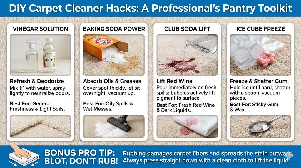 I quickly learned that my pantry was a goldmine. Using white vinegar or baking soda isn’t just a “hack”; it’s a legitimate way to manage the chemistry of your carpet. I realized that if I could eat the ingredients, they were probably safer for my kids to crawl on. It changed my entire approach to professional maintenance.