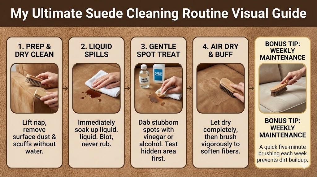 My biggest takeaway from years of living with suede is that consistency is more important than deep cleaning. I spend five minutes every Sunday just brushing the high-traffic areas. This simple habit keeps the dirt from ever getting a foothold, making my occasional deep cleans much faster and less stressful than they used to be.