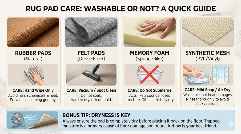 Most high-quality rug pads are not machine washable because agitation can tear the internal fibers or degrade the non-slip grip. To ensure proper rug pad maintenance, it is generally recommended to hand wash or vacuum using low suction to prevent permanent structural damage.