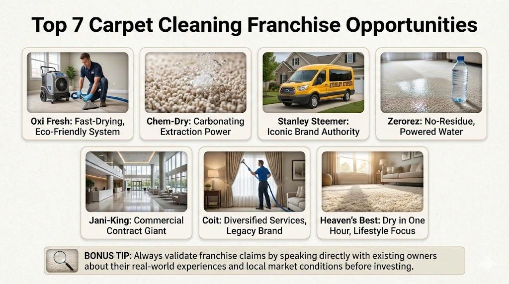 If you’re looking for a “lifestyle” business, Heaven’s Best is my favorite. They use a dry-in-one-hour process that is very popular. I found that their franchise fee is one of the most reasonable in the industry. It’s a great option for someone who wants to start small and grow at their own pace without a massive corporate shadow.
