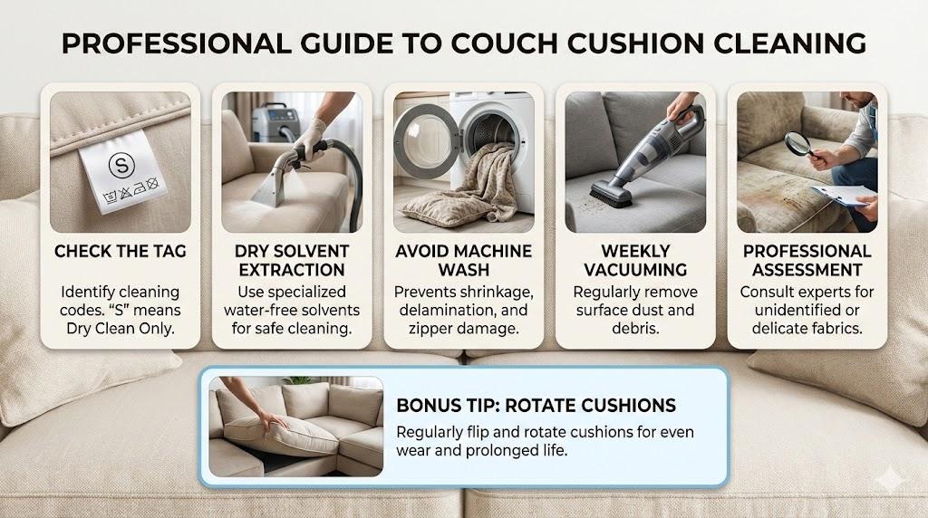 When you spill red wine or notice your sofa looking a bit lived-in, the first question is often: can couch cushions be dry cleaned? While dry cleaning solvents effectively remove oils, always check the fabric care tag first. Professional cleaning prevents permanent fabric shrinkage and preserves your furniture’s longevity.