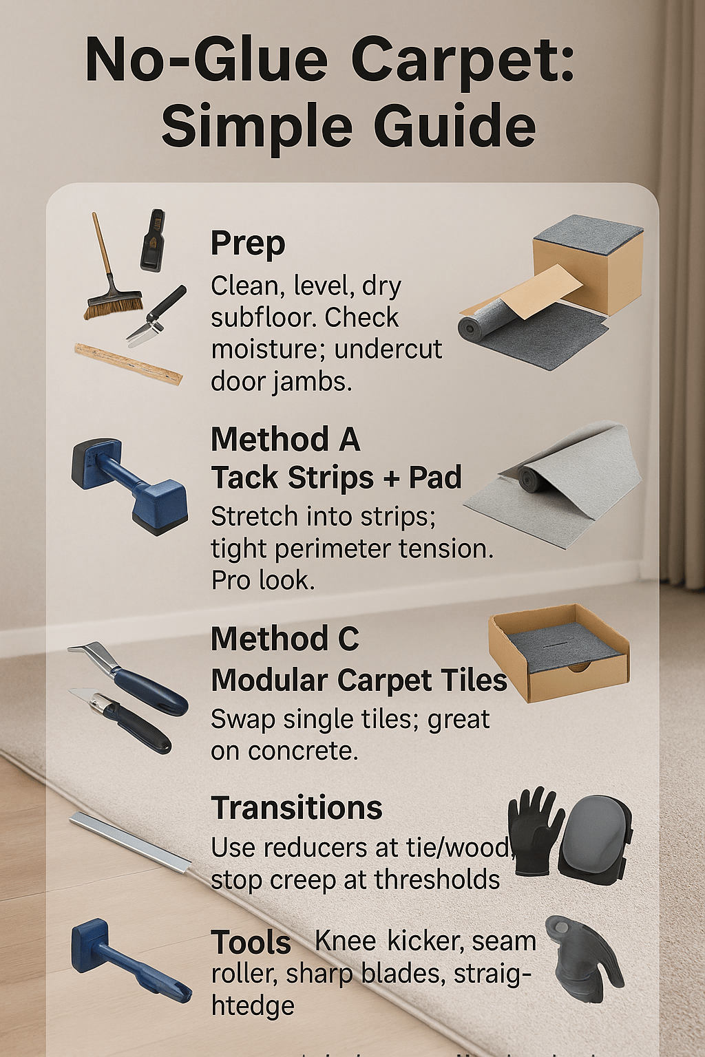 No-Glue Carpet Quick Facts (Phone-Friendly)