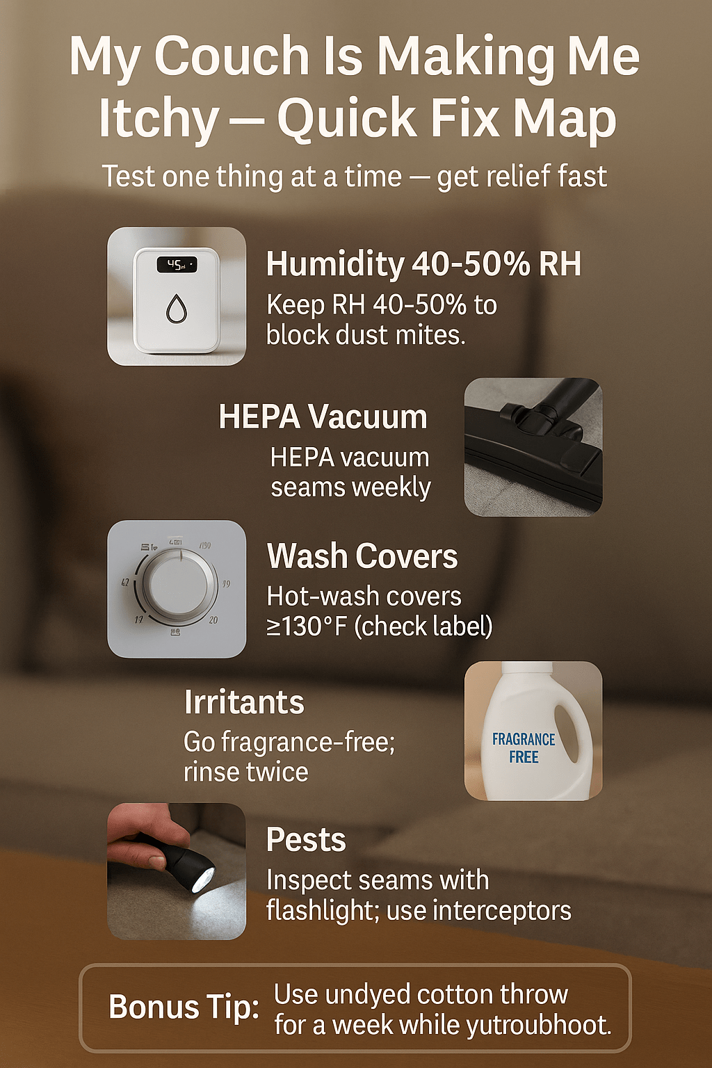A weird itch after couch time pushed me into full detective mode. I checked fabric, bugs, cleaners, and even room humidity. What I learned: most “itchy couch” problems aren’t random. They follow patterns—like allergens, irritants, pests, or new-couch off-gassing—and each one has a clean, simple fix if you test in the right order.