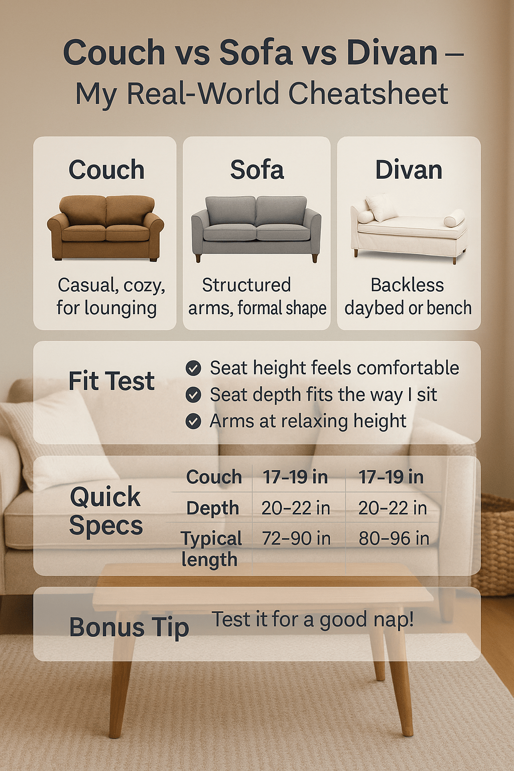 My Real-World Guide: Couch vs Sofa vs Divan (What I Learned)