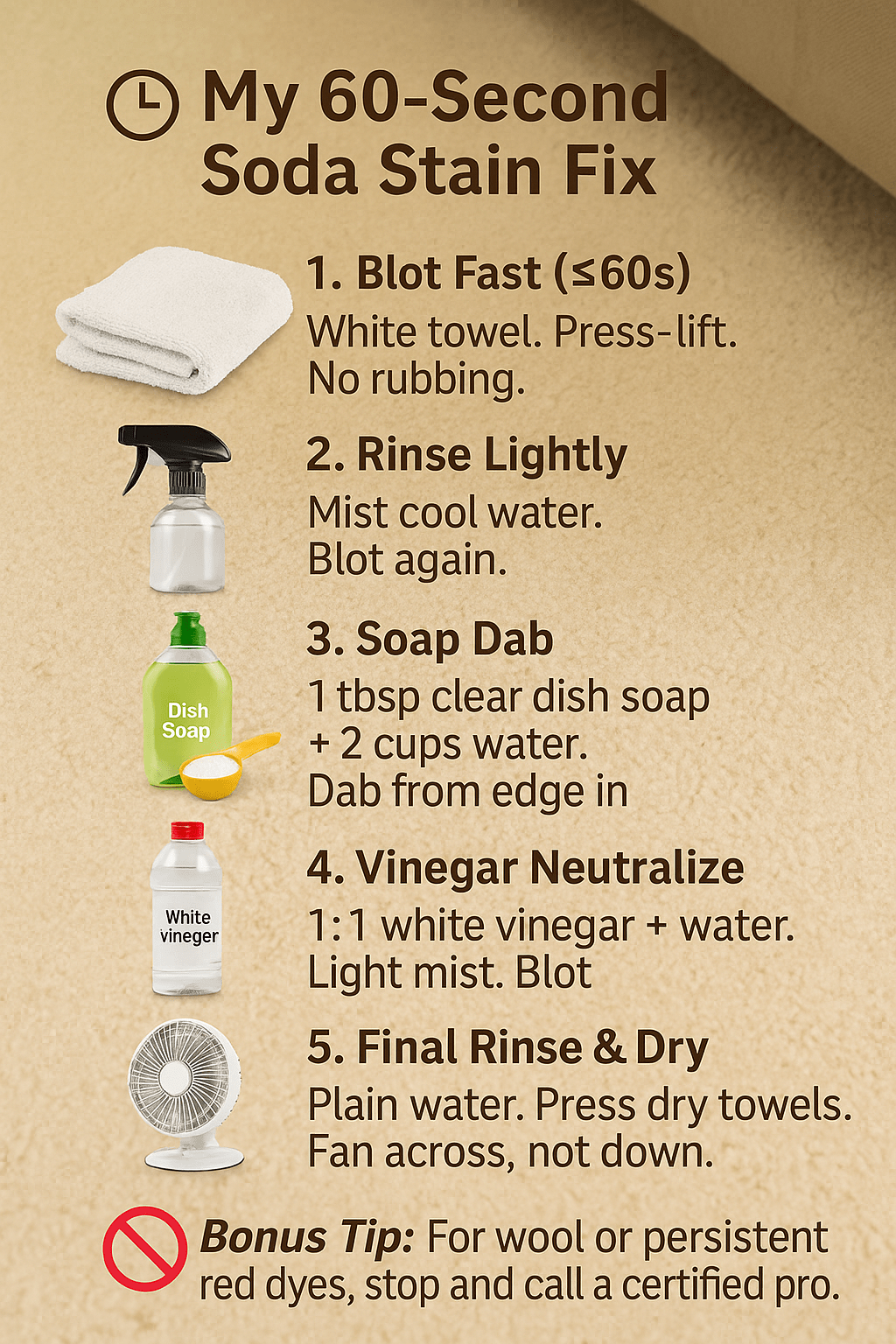 Spilled cola on my light carpet at 10 p.m.—I’ve fixed this exact mess more times than I can count.