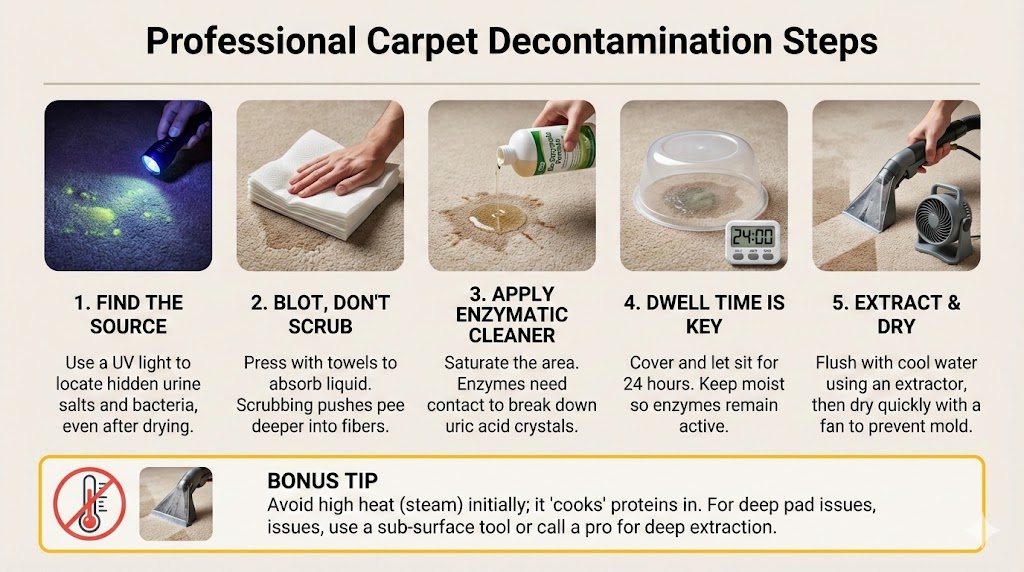 I asked a restoration expert when I should just throw the carpet away. He told me that if the urine has reached the subfloor and soaked into the plywood, no amount of surface cleaning will ever truly fix the smell. Sometimes, the most professional thing you can do is tear it out and seal the wood.