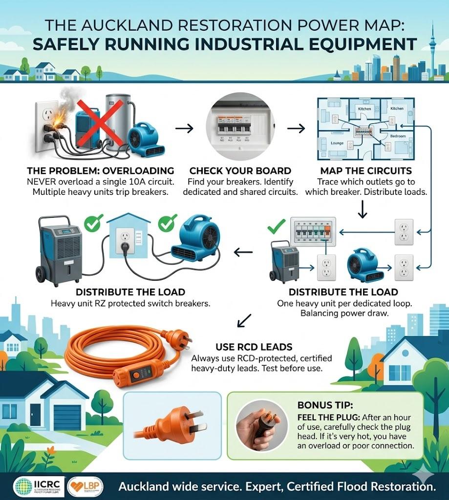 Electrical load planning ensures you safely operate high-powered restoration gear on standard 230V NZ outlets. By calculating circuit capacity and monitoring amperage draw, you prevent tripped breakers and fire hazards during critical flood recovery or deep cleaning projects in residential properties.