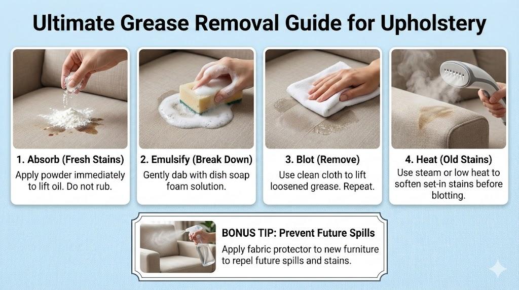 That disaster taught me that oil is a different beast entirely. Unlike juice or coffee, grease doesn’t just sit on the surface; it wants to become one with the fibers. I spent hours crying over that sofa before I realized I needed a better strategy. My frantic scrubbing only pushed the grease deeper into the foam padding, making the situation much worse.