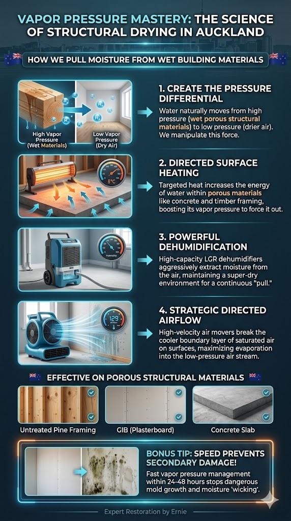 Living in Auckland, we know all about humidity. But when a pipe bursts or a storm hits, just “airing things out” isn’t enough. To save your home, we have to talk about the invisible force of vapor pressure.