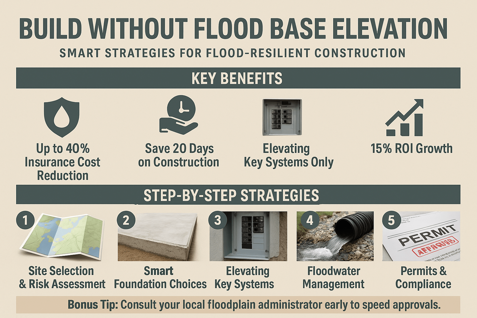 without-flood-base-elevation lowers flood risk and cuts insurance costs, removing mandatory elevation rules. It speeds construction in flood-prone zones, saving developers time and money. This approach enhances community resilience. Savings up to 40% on permits are achievable.